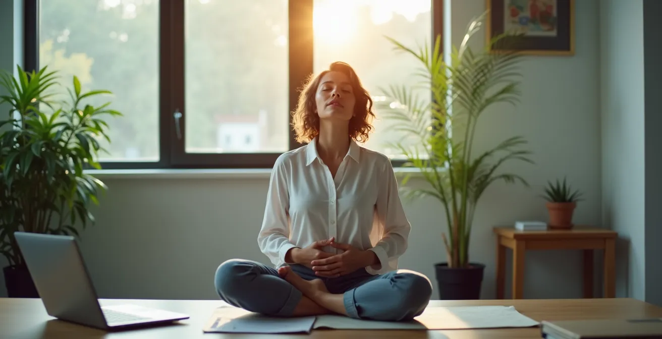 Quando l’ansia sale e il cuore inizia a battere all’impazzata, la prima reazione è cercare di “calmarsi” con la forza del pensiero. È un fallimento annunciato. La soluzione più rapida ed efficace non è cognitiva, ma fisiologica: usare il respiro per hackerare il sistema nervoso. La tecnica di coerenza cardiaca 3-6-5 è un potente interruttore per passare dalla modalità “combatti o fuggi” (sistema simpatico) a quella “riposa e digerisci” (sistema parasimpatico). Non richiede alcuno sforzo mentale, solo un ritmo da seguire: inspira per 3 secondi, trattieni per 6 secondi ed espira lentamente per 5 secondi. Ripeti per 3 minuti.